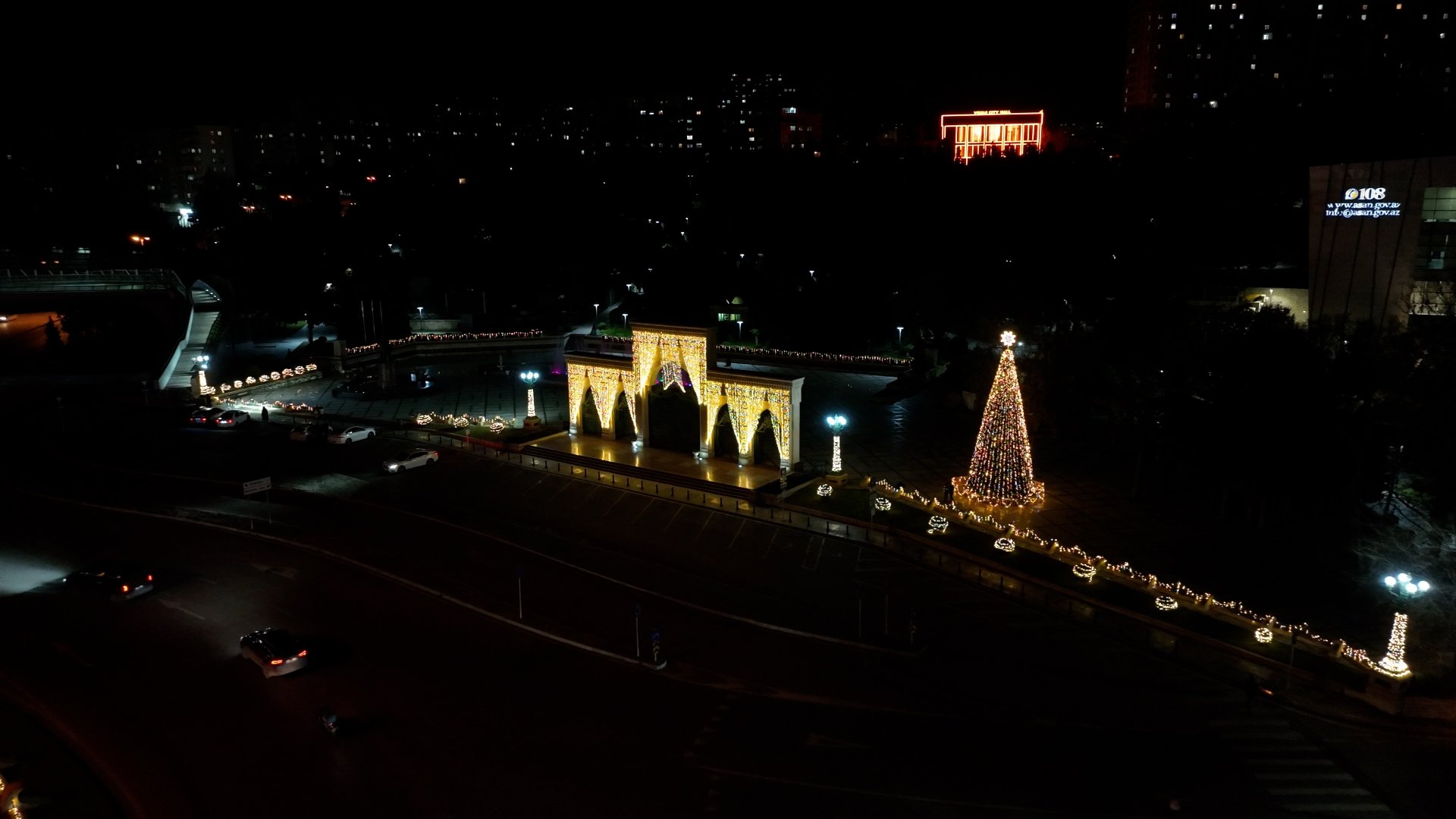 Heydər Əliyev adına mədəniyyət və istirahət parkında, 8 Noyabr prospektində, Yusif Səfərov, M. Hadi, Zığ yolu və digər küçələrdə yol boyunca təbii ağaclar işıqlandırılıb, yolkalar və müxtəlif dekorativ elementlər quraşdırılıb. Bu tərtibat işləri ətraf mühitə xüsusi bayram ab-havası qatır.